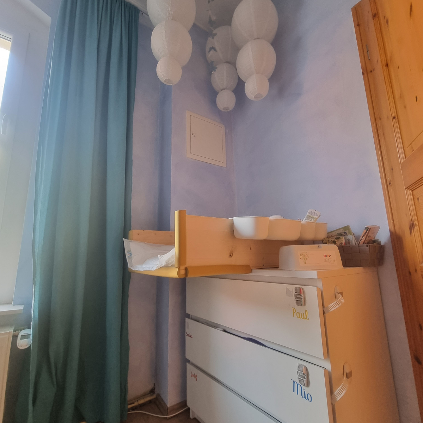 In diesem Raum befindet sich zudem eine Wickelstation mit Schrank, in dem jedes Kind ein eigenes Fach für Wickelutensilien und ausreichend Wechselsachen hat. Für besondere Situationen nutzen wir eine mobile Wickelunterlage, um individuell auf die Bedürfnisse der Kinder eingehen zu können.